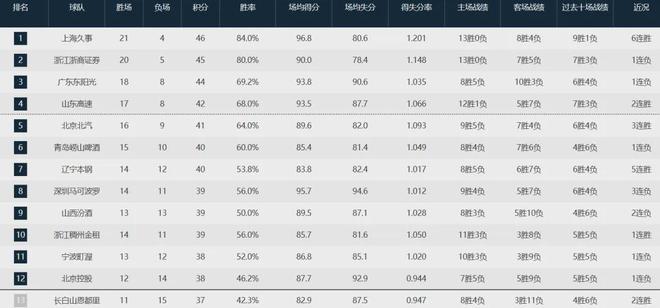 目前吉林隊以11勝15負(fù)排名聯(lián)盟第13位,距離季后賽區(qū)域僅一步之遙;山西隊則以13勝13負(fù)排名聯(lián)盟第九。