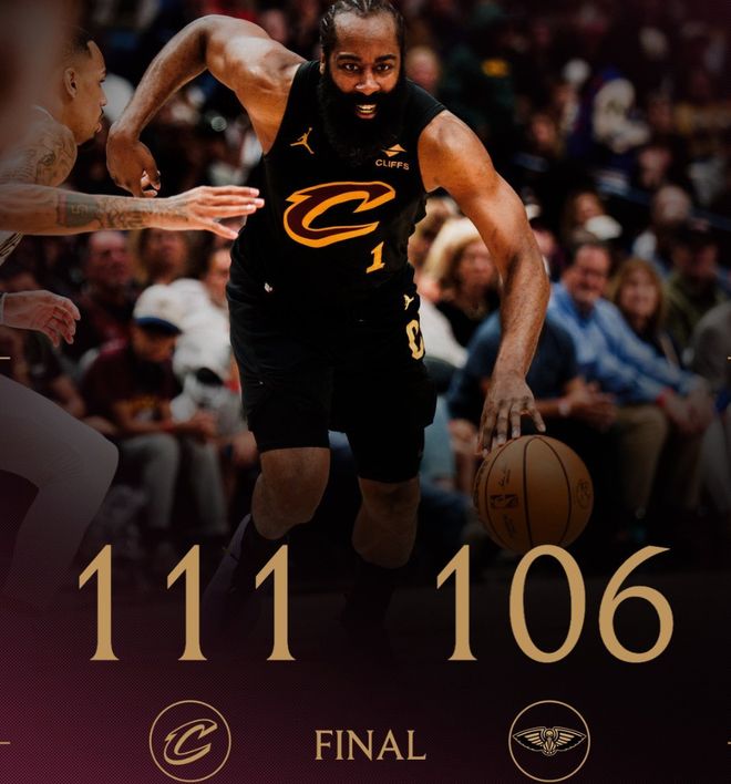 哈登出戰(zhàn)的比賽里,騎士拿到13勝4負,目前高居?xùn)|部第4。