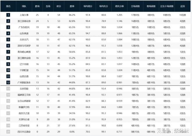 CBA最新排名:廣東前三位置不穩(wěn),上海10連勝領跑,新疆又掉隊