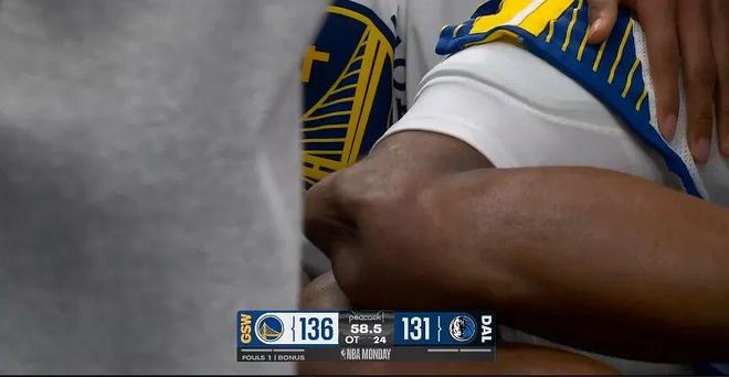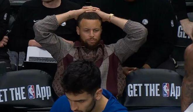 轉(zhuǎn)播方不敢再給特寫,信號(hào)直接切走,場(chǎng)邊庫(kù)里雙手抱頭,眉頭緊鎖,面色鐵青,戴上了痛苦面具。