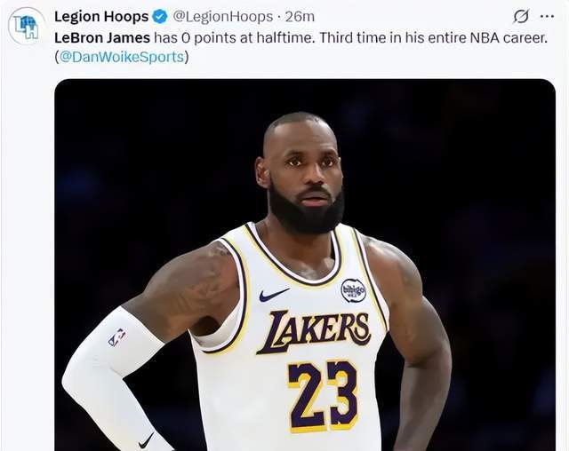先從上半場(chǎng)來看,如果只看數(shù)據(jù),詹姆斯基本沒有多少存在感。出戰(zhàn)18分鐘,5投0中,數(shù)據(jù)包上0分4籃板6助攻。對(duì)于詹姆斯而言,這種畫面屬實(shí)少見。
