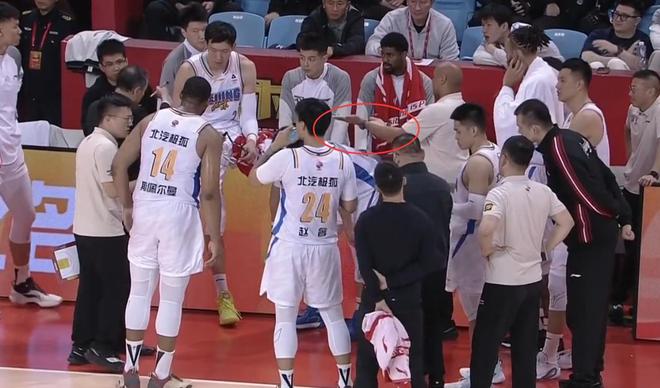 杰曼、貝利和麥基都圍過來找他,似乎是在問:老布,怎么不是你在布置戰(zhàn)術(shù)?布魯頓似乎是在攤手示意大家:別看我,現(xiàn)在戰(zhàn)術(shù)板在許指導那里(貝利聽完直接搖了搖頭又坐了回去)。