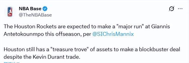 北京時間3月25日,據(jù)《體育畫報》記者曼尼克斯消息,火箭預(yù)計將在休賽期探索交易得到字母哥的可能性。曼尼克斯在《OpenFloor》播客節(jié)目中表示,他預(yù)計休斯頓會全力追求這位雄鹿球星。