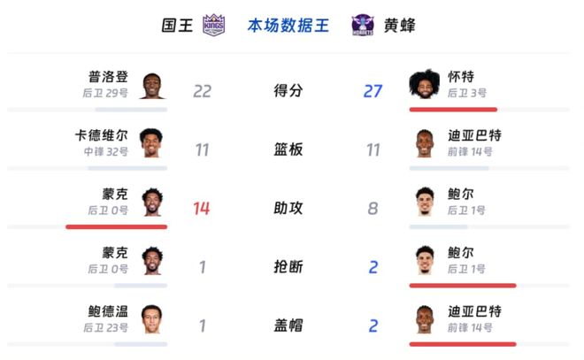 三分線外9投僅中,這樣的外線火力,別說贏球,就連跟上對手的節(jié)奏都難,全場比賽國王被黃蜂壓著打,節(jié)節(jié)敗退的局面從首節(jié)延續(xù)到末節(jié),絲毫沒有翻盤的跡象。