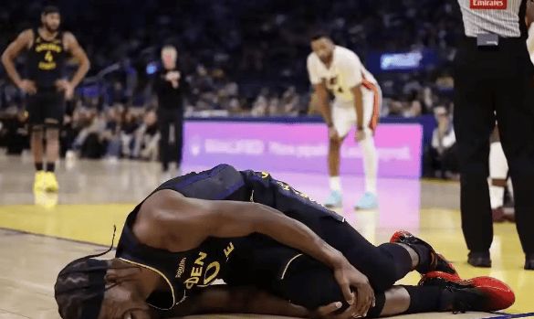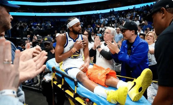 3月24日,達拉斯美航中心,加時賽還剩58.5秒。勇士后衛(wèi)摩西·穆迪搶斷后快攻扣籃,左膝卻在騰空瞬間發(fā)出異響——髕骨錯位、膝蓋塌陷,他痛苦倒地,被擔架抬出場。庫里掩面跪地,全場沉默。