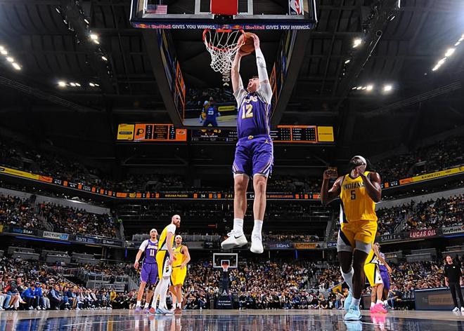 本場比賽中,湖人的先發(fā)鋒線新星杰克-拉拉維亞(Jake LaRavia)的表現(xiàn)也算是具備一定的亮點的。拉拉維亞全場出場28分37秒,投籃3中3,得到了6分5籃板1助攻4搶斷1蓋帽的數(shù)據(jù),還有3次失誤和3次犯規(guī),正負(fù)值為-1。拉拉維亞在進(jìn)攻端的存在感比較有限,出手次數(shù)不多,而且他在傳球和策應(yīng)方面的表現(xiàn)也是比較一般的,確實是沒有什么太多的貢獻(xiàn)。不過另一方面,拉拉維亞在防守端的表現(xiàn)也是相當(dāng)不錯的,他也是展現(xiàn)出了自己出色的防守能力,他完成了大量的搶斷,他在防守端的存在感確實是相當(dāng)突出的水平??傮w來看,拉拉維亞也算是起到了一定的作用了,只是可能他在能力方面也確實是差了一些,他也還是很難在這種情況下起到更大的作用了。