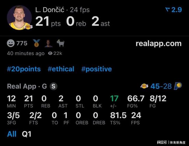 比賽開場第一節(jié),東契奇就展現(xiàn)出了驚人的得分爆發(fā)力。他12次出手命中8球,其中三分球5投3中,一人獨得21分,還送出2次助攻。當時我興奮得差點跳并不高超的算術(shù)水平,也能輕易算出,如果按照這樣的節(jié)奏,四節(jié)比賽打完,東契奇豈不是要狂砍84分?84分啊,這個數(shù)字一旦達成,將剛好超越阿德巴約之前創(chuàng)下的83分紀錄。