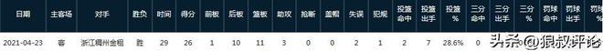 20-21賽季,浙江對(duì)陣廣東的比賽,程帥澎單場(chǎng)18罰16中,得到25分3籃板4助攻。