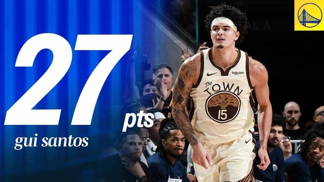 這場比賽,勇士前鋒桑托斯又打出一場代表作:全場出戰(zhàn)33分鐘,投籃12中8,三分5中3,罰球9中8,得到27分4籃板4助攻。