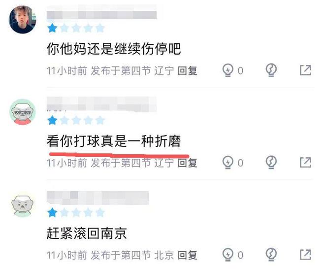 本輪遼寧以16分慘敗廣州的比賽中,王嵐欽出戰(zhàn)15分鐘,6投僅1中,三分球2中0,只得到4分,且沒有送出1次助攻,還有2次失誤,-24的正負值為全隊最差。有遼寧球迷直言:看你打球真是一種折磨。