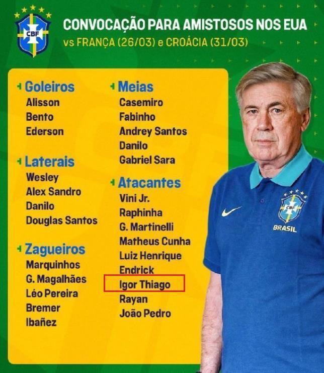 當伊戈爾蒂亞戈的名字終于出現(xiàn)在巴西國家隊的大名單中,相信所有人的第一反應(yīng)都是實至名歸。作為本賽季英超賽場上甚至是歐洲五大聯(lián)賽中,表現(xiàn)最為出色的巴西球員,伊戈爾蒂亞戈絕對有資格,進入安切洛蒂的桑巴軍團。